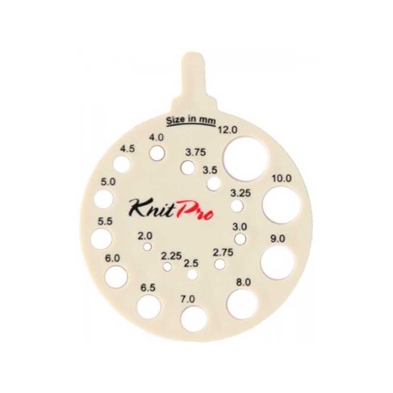 917 321 358**Knit Pro - Acessório para medir o calibre das agulhas de tricot e crochet (em milímetros). Muito prático para poder usar agulhas antigas ou outras de onde a medida tenha desaparecido com o uso.