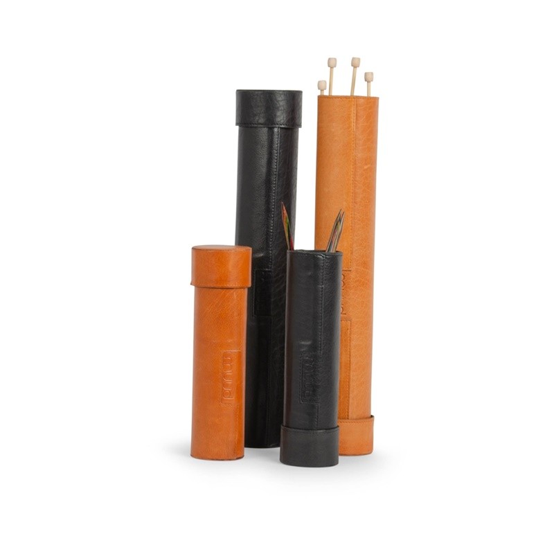 Upsala da marca Dinamarquesa Muud é um lindo tubo de couro feito à mão, projetado para manter as suas agulhas de tricot perfeitamente organizadas.
