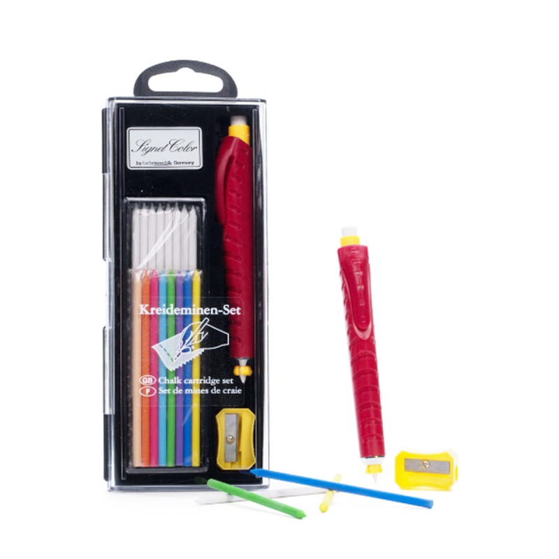 917 321 358**Lapiseira com 9 minas de giz brancas, 8 coloridas e uma afia.