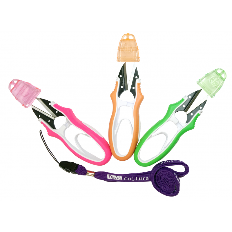 Corta linhas sem punho, com proteção e fita para colocar ao pescoço.