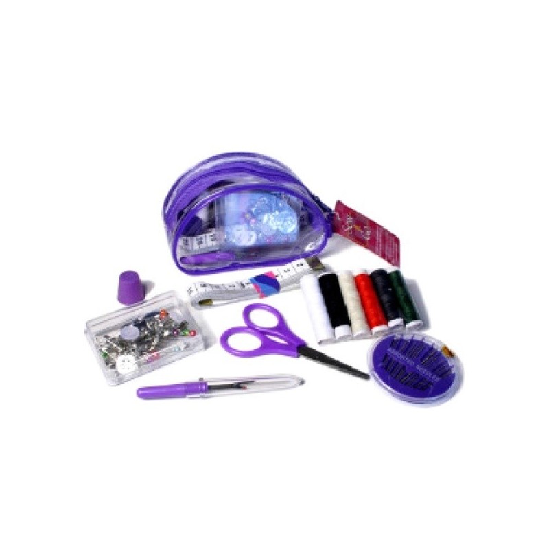 917 321 358**Set de costura composto por, tesoura, dedal, alfinetes, agulhas, fita métrica, molas, linhas, alfinetes, enfiador, botões e descosedor. Ideal para viagem.