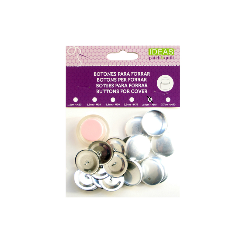 Pack com 10 botões de metal para forrar com molde - 28mm - M45.