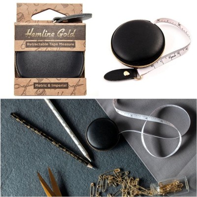 A Fita Métrica Retrátil da Hemline Gold é um acessório prático para medir seus projetos de costura ou artesanato. Esta fita mede 150 cm no total e apresenta uma escala em centímetros e polegadas, cada uma em um lado diferente. Os números são muito fáceis de identificar em seu fundo preto.