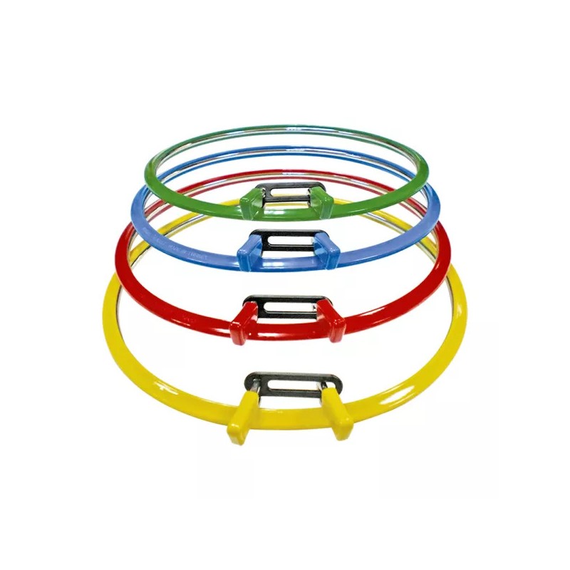 Os aros de bordado  mantêm os projetos de bordado firmes e suaves. O aro tem duas partes - um anel de plástico e um anel de metal que flexiona e pode ser encaixado na ranhura do anel de plástico. Super fáceis de usar, os aros tensores de mola eliminam a necessidade de apertar os parafusos, mas podem ser bastante firmes, pois precisam manter o tecido esticado. Coloque o tecido sobre o bastidor externo, aperte o bastidor interno e coloque-o suavemente dentro do bastidor interno.
