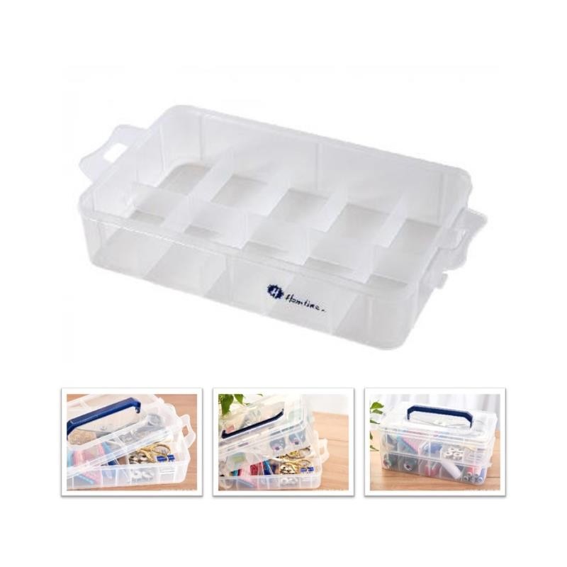 Prático sistema de armazenamento perfeito para costura, artesanato e acessórios em geral. Com clipes seguros para tampa ou bandeja superior.