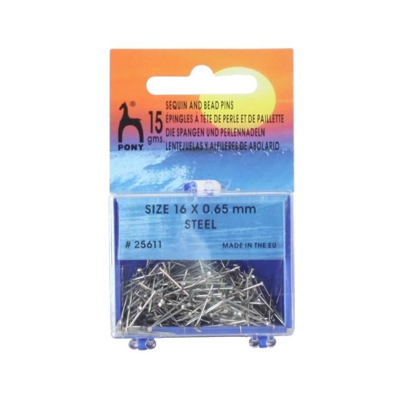 Alfinetes adequados para trabalhos criativos, especialmente para fixação de contas ou lantejoulas em bolas ou formas de poliestireno.