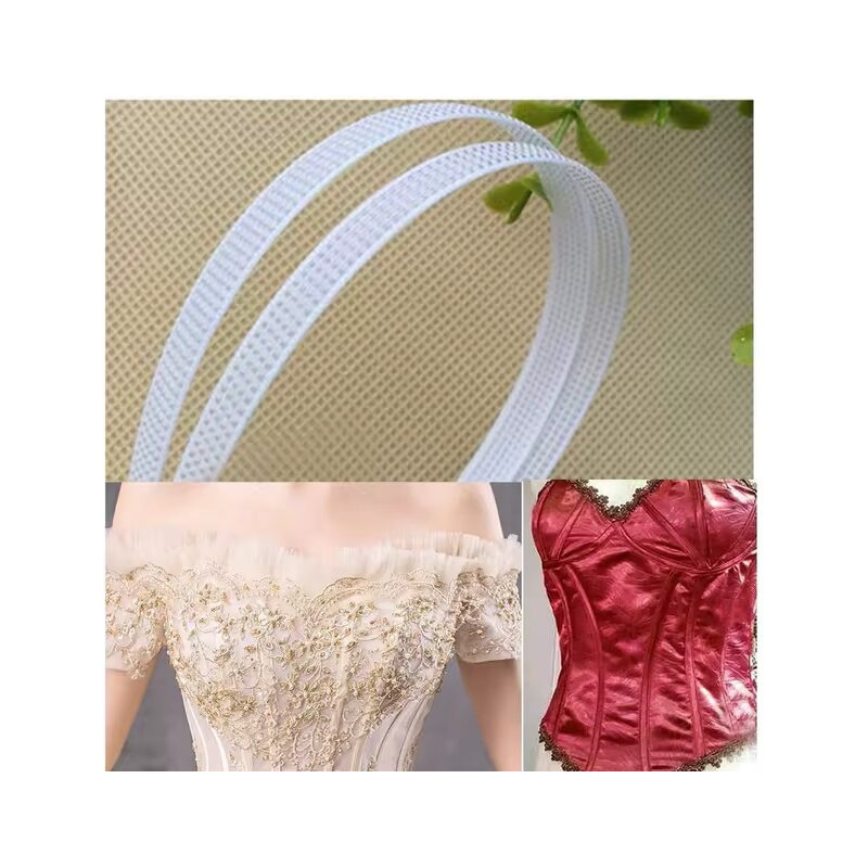 Espartilho de poliéster, especialmente usado para dar forma e suporte a peças sem alças, vestidos de noiva, trajes teatrais, trajes de noite, roupas de praia, brinquedos macios etc.