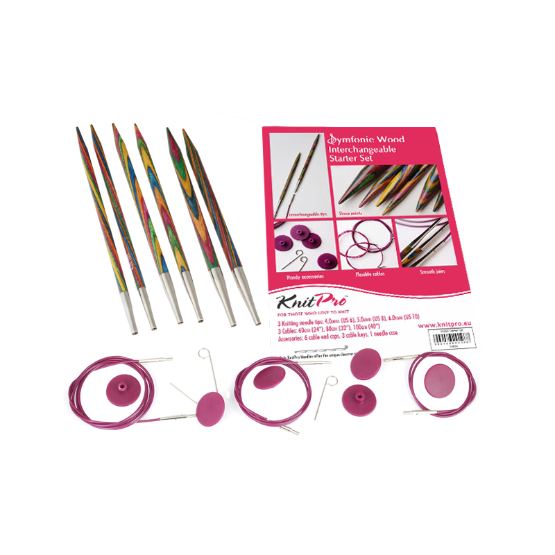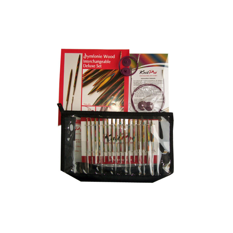 917 321 358**KnitPro - Symfonie Wood Deluxe Set. Conjunto útil de agulhas em madeira intercambiáveis nos oito tamanhos mais populares.