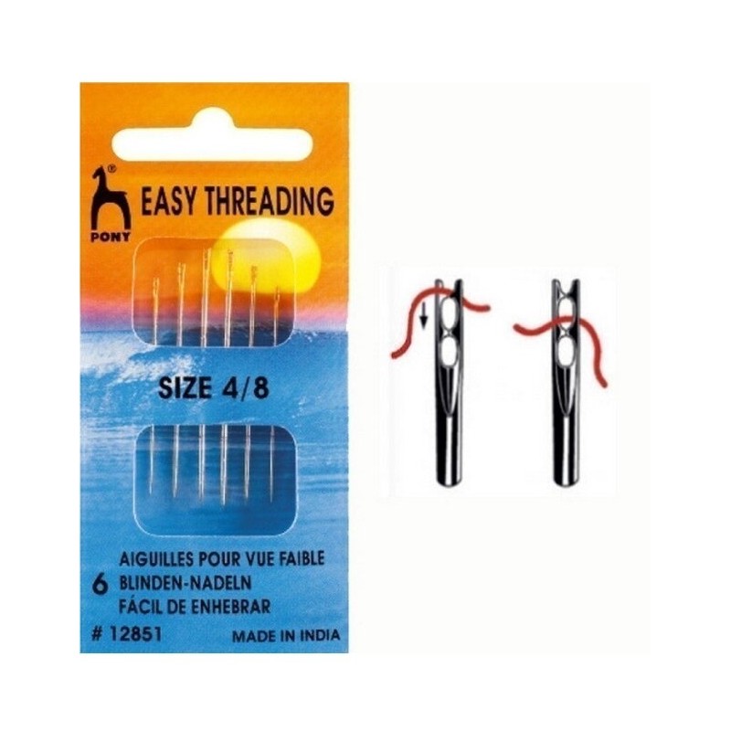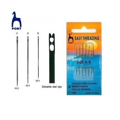 6 Agulhas do nº4 ao noº8. Com o orifício largo para melhor enfiar a linha.