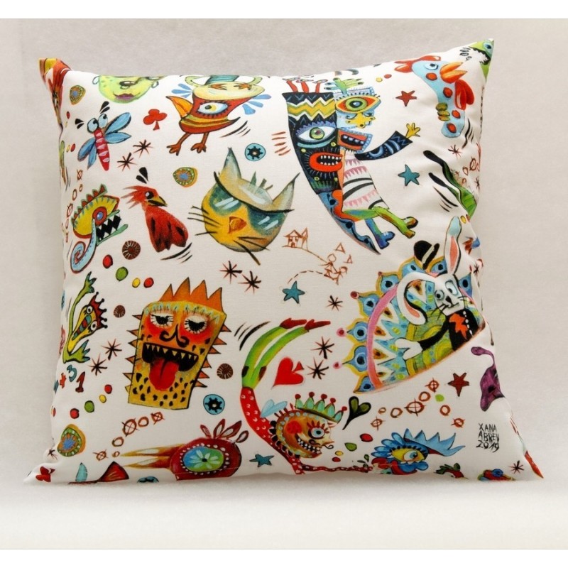 Almofada de decoração, quadrada com 45cms x 45cms, com fecho de correr e recheio de enchimento anti-alérgico forrado com tecido TNT.