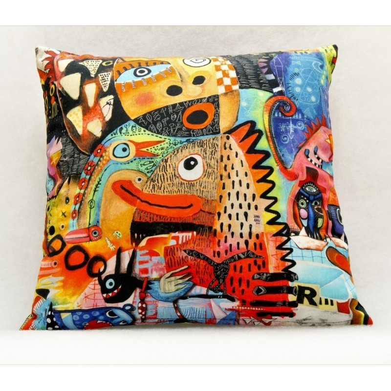 Almofada de decoração, quadrada com 45cms x 45cms, com fecho de correr e recheio de enchimento anti-alérgico forrado com tecido TNT.