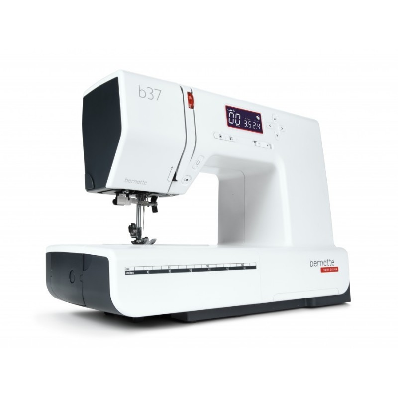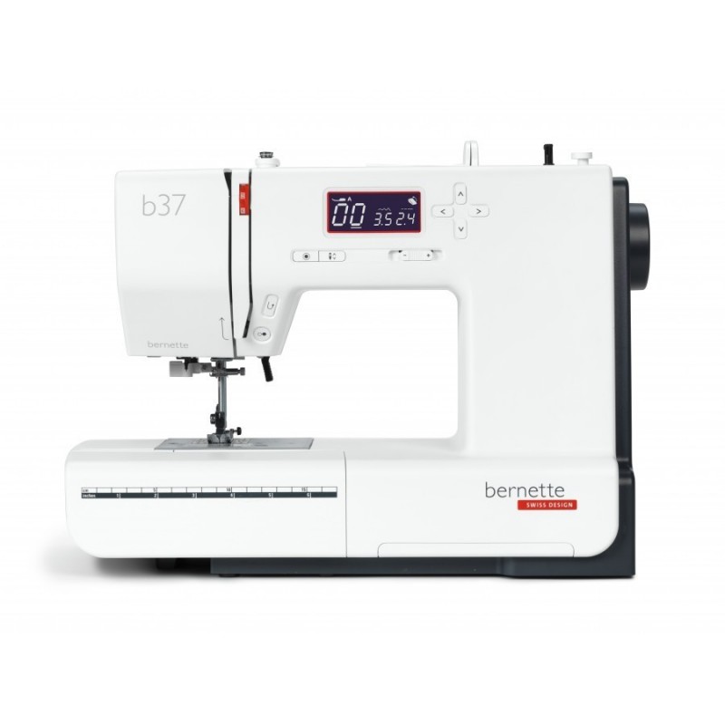 A bernette 37 é um modelo compacto computorizado de operação simples e estrutura robusta. Esta máquina possuí inúmeras funções, tais como a função "start/stop" ("iniciar/parar") que lhe permitem costurar sem ter que utilizar o pedal. Também poderá utilizar a função "stop up/down" ("parar em cima/em baixo") para escolher se a agulha deve parar sobre o tecido ou acima do tecido. Esta é uma vantagem importante quando se pretende costurar rebordos e virar o tecido em torno da agulha.