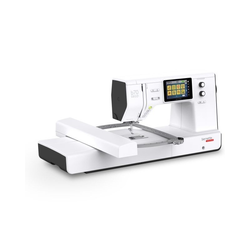A b70 DECO é uma verdadeira especialista. Já tem uma máquina de costura, mas também quer bordar? Esta máquina de bordar pura oferece tudo para decorar ou personalizar roupas ou acessórios. Mais de 200 desenhos de bordados já integrados, que pode facilmente editar no grande e colorido ecrã sensível ao toque. Pode fazer o upload e salvar mais desenhos de bordado via pendrive. Com os dois módulos de software de bordar BERNINA Toolbox Lettering and Editing, tem ainda mais possibilidades criativas.