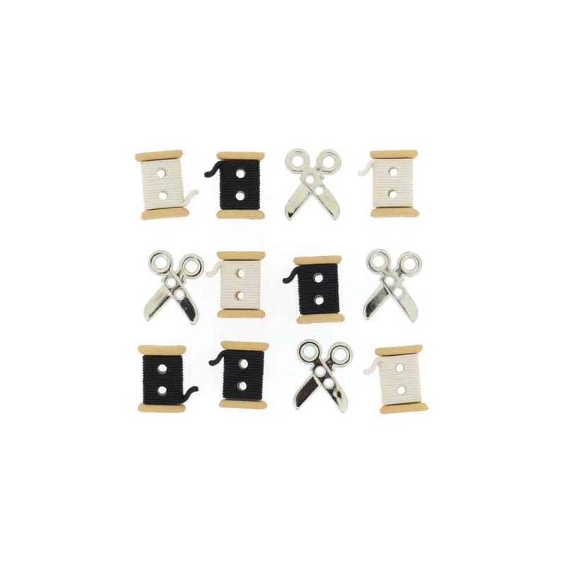 Conjunto de botões decorativos que podem ser utilizados como aplicação ou para coser em tecido.