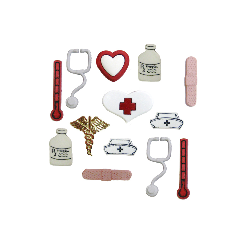 Conjunto de botões decorativos que podem ser utilizados como aplicação ou para coser em tecido.