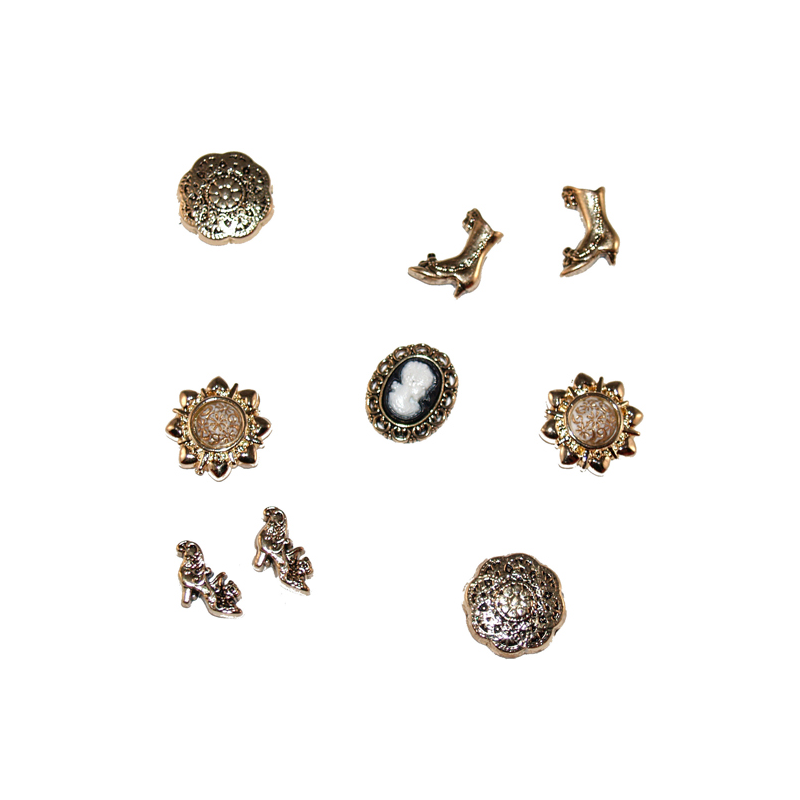 Conjunto de botões decorativos que podem ser utilizados como aplicação ou para coser em tecido.