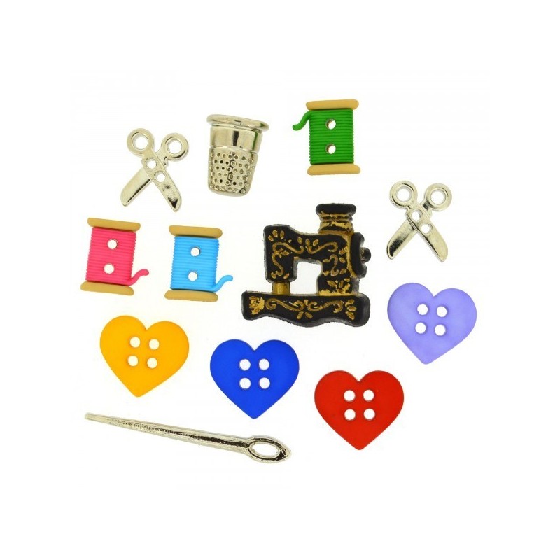 Conjunto de botões decorativos que podem ser utilizados como aplicação ou para coser em tecido.