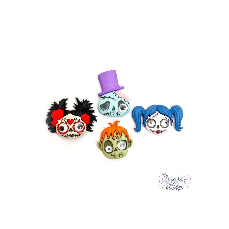 Conjunto de botões decorativos que podem ser utilizados como aplicação ou para coser em tecido.