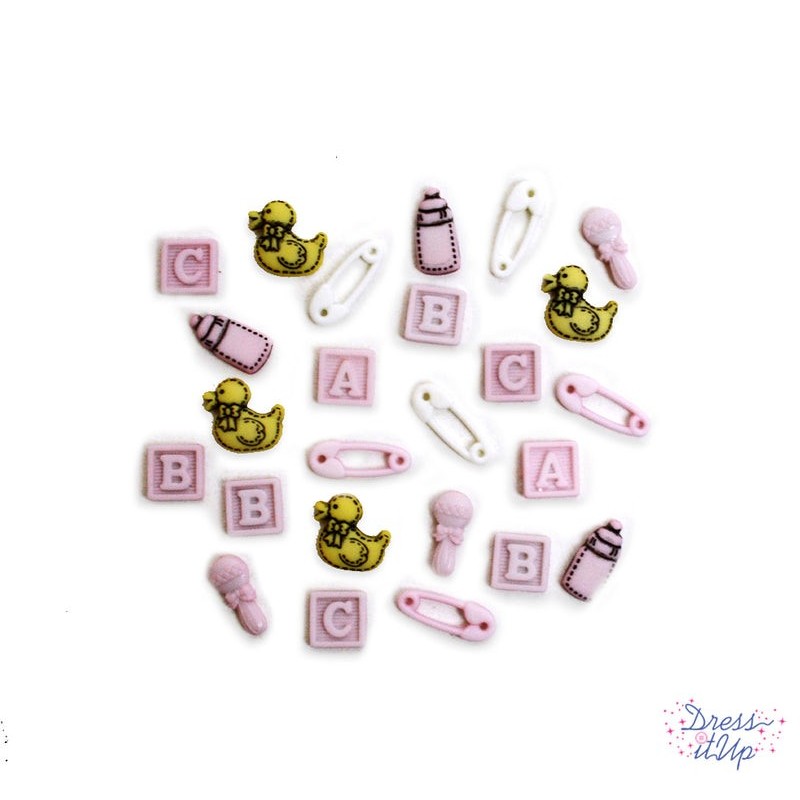 Conjunto de botões decorativos que podem ser utilizados como aplicação ou para coser em tecido.