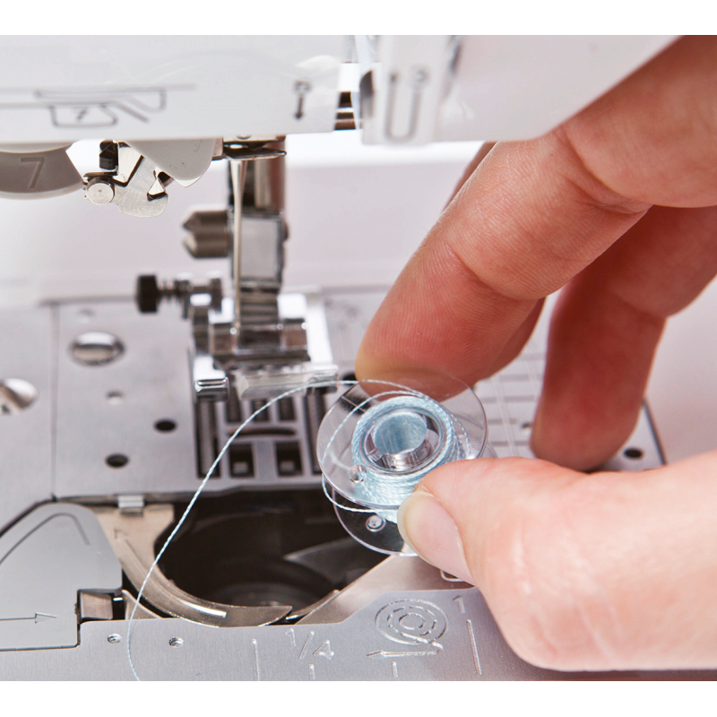 Na função costura há o sistema “pivot” que permite rodar os trabalhos para costurar numa outra direção, ideal para os apaixonados de quilting. Também há o sistema ICAPS que deteta a grossura do tecido e regula automaticamente a máquina para obter resultados precisos e uniformes.