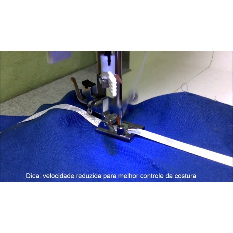 Mais um calcador para detalhes e este, por possuir uma abertura triângular ajuda na costura de fitas e elástico.