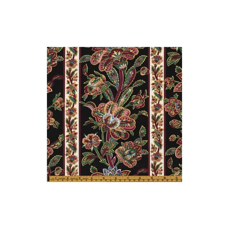Tecido estampado com motivo de chita de Alcobaça. Padrão Shangrila com as tradicionais flores e riscas.