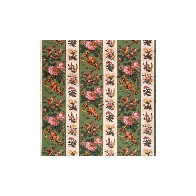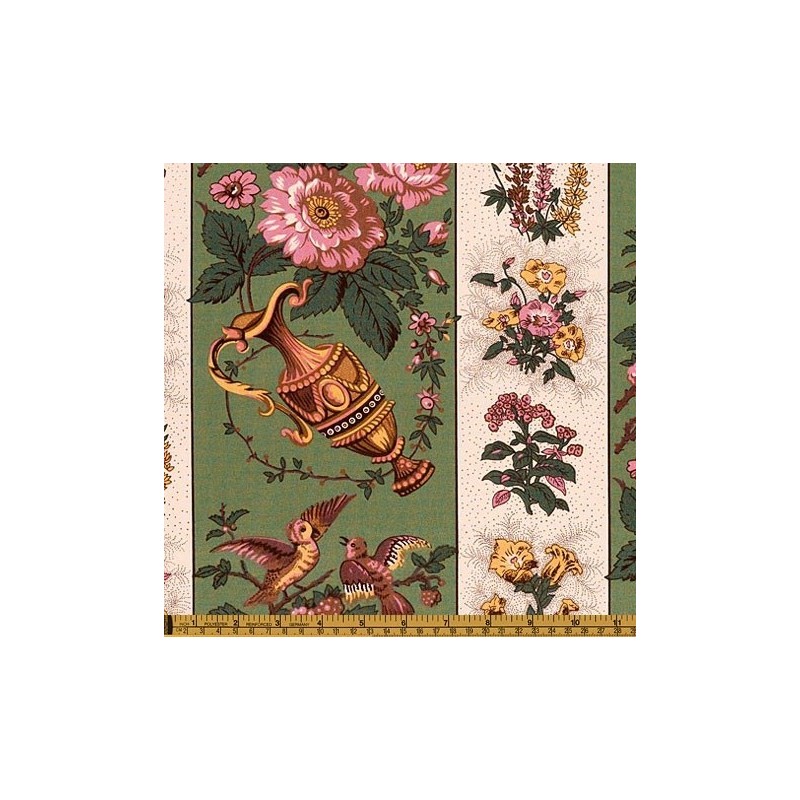 Tecido estampado com motivo de chita de Alcobaça. Padrão clássico com as ânforas, pássaros e flores.