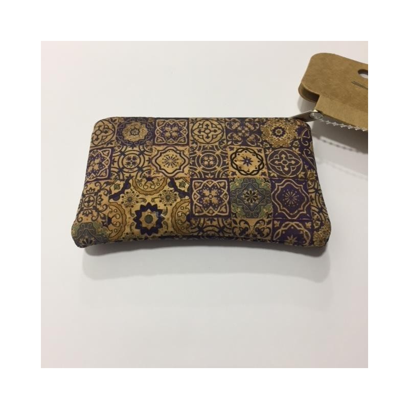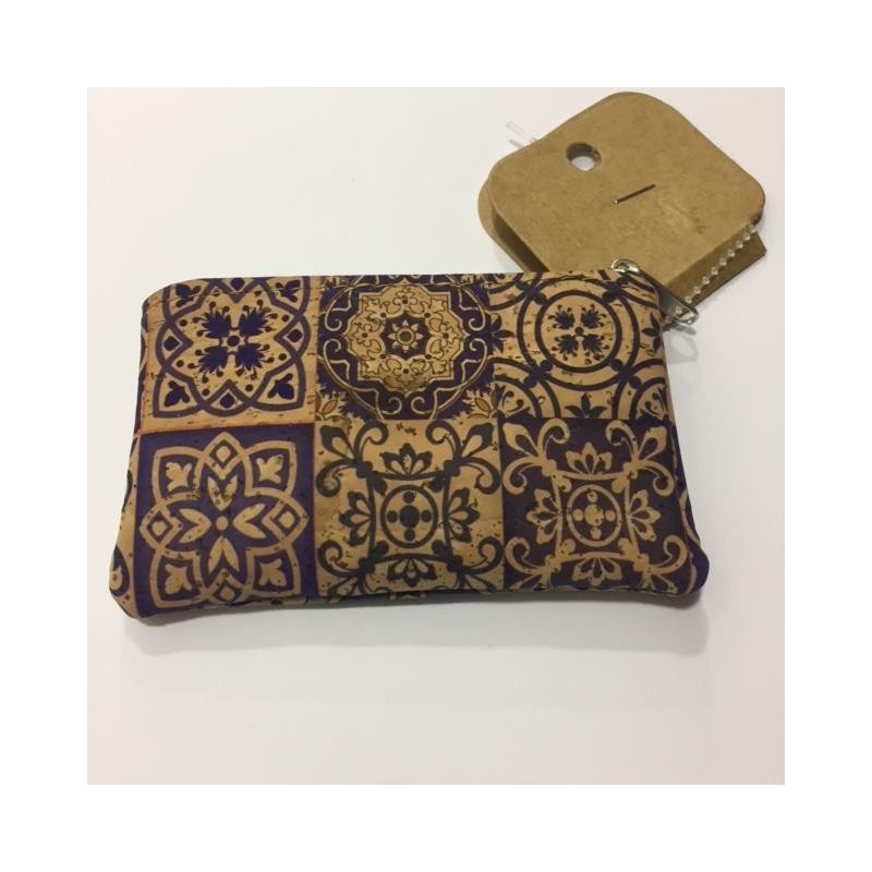 Porta moedas em cortiça com padrão inspirado nos azulejos de Portugal.Dimensões - 11 x 7cm