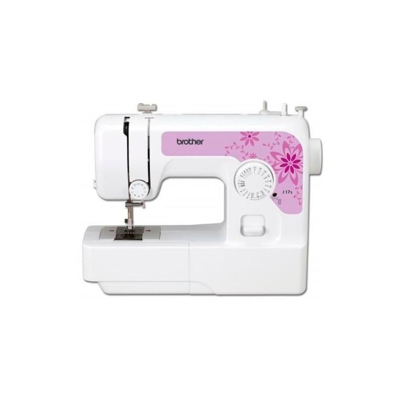 Leve, prática, a Brother J17 é uma máquina mecânica, possui 16 pontos que possibilita muitas funções diferente de costura, caseador automático de 4 passos, luz embutida, suporte especial para acessórios, troca rápida de calcador.
