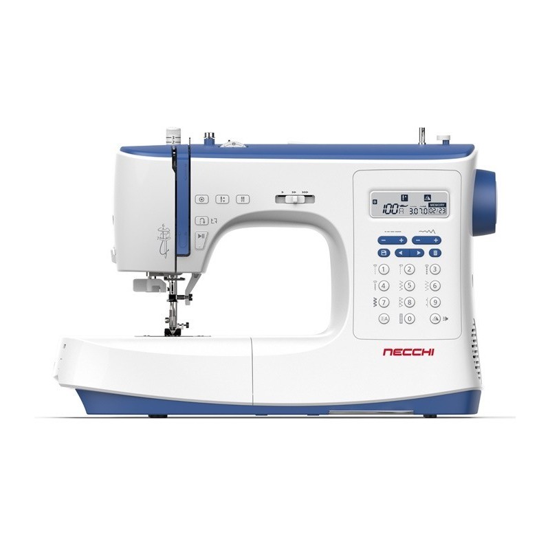 A máquina de costura computadorizada Necchi NC-103D, graças às teclas de entrada rápida, permite selecionar 316 pontos que podem ser visualizados no grande display LCD retroiluminado. Inclui 10 variantes de caseado num só passo e 2 fontes alfanuméricas para monogramas básicos. O design da máquina garante uma visão ampla da superfície de trabalho permitindo uma excelente visão da área da agulha.