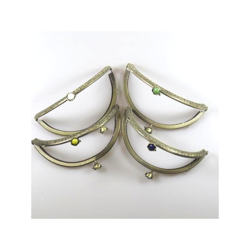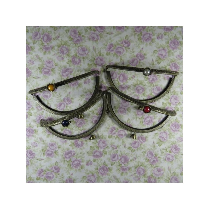 Fecho metálico em ouro velho trabalhado de 12.5cm com pérola colorida.