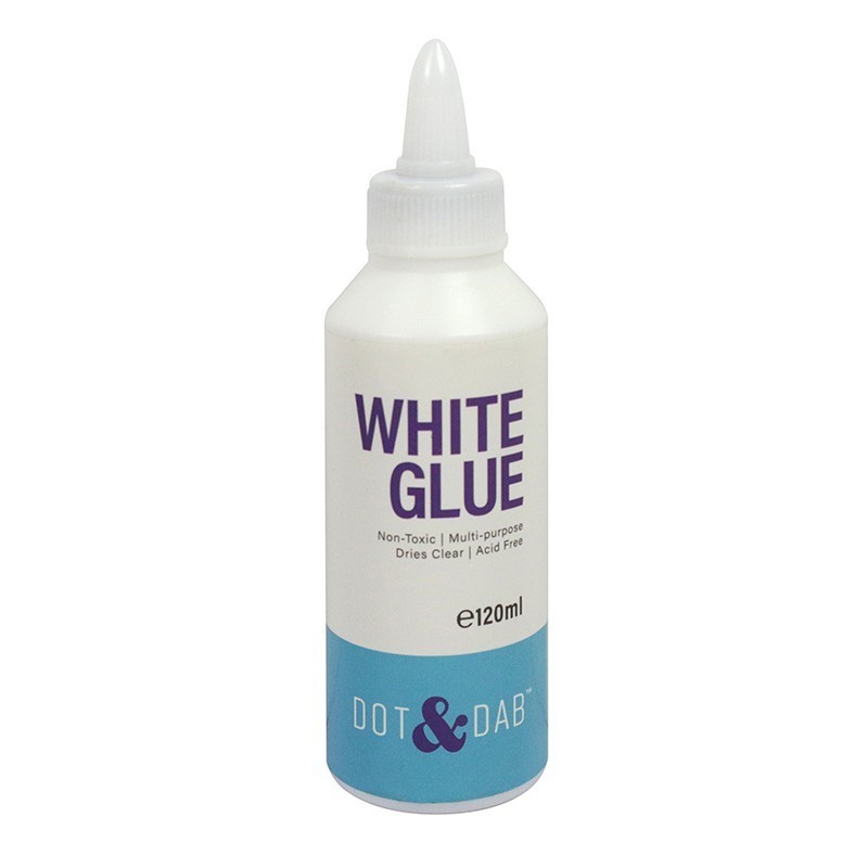 Dot & Dab - Uma cola durável e multiuso para colar papel, papelão, espuma, tecido ou madeira. Aplique a cola em uma das superfícies coladas e pressione os detalhes juntos. Deixe a cola endurecer completamente.