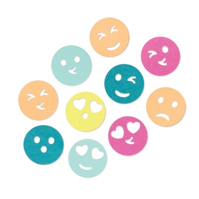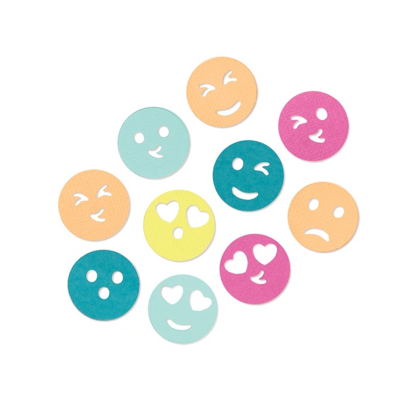 Com esta placa podemos criar todos os tipos de Emojis em papel e cartolina. Estas caras engraçadas são ideais para criar álbuns, LO, adicionar expressões ao seu calendário, emoções e notas a uma foto, etc.