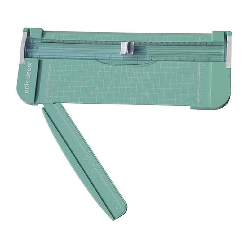 917 321 358**Guilhotina para cortar e marcar papel e papelão até 400g de espessura. Mede tamanhos até 33 cm ou 13 polegadas. Perfeito para todos os tipos de artesanato e trabalho de scrapbook. Fácil de usar, vem com um marcador e uma lâmina afiada. Barras de medição dobráveis para fácil armazenamento.