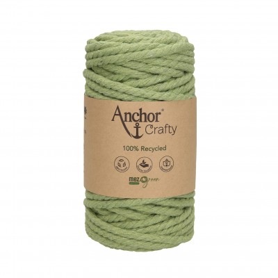 Anchor Crafty é um fio 100% reciclado fabricado a partir de resíduos têxteis e plásticos, tornando-o amigo do ambiente e sustentável. O fio é corda na sua construção; composto por um cordão macio de 3 camadas torcidas com cerca de 5 mm de espessura, muito fácil de trabalhar, ideal para iniciantes no artesanato e para projetos de rápida execução.