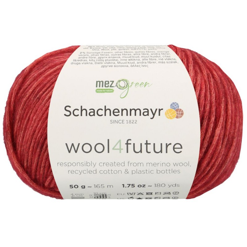 O wool4future é um fio sustentável feito a partir de uma rede de algodão reciclado, que é preenchida com poliéster reciclado e fibras de merino, dando um toque macio ao fio. O algodão é obtido a partir de sobras da produção têxtil e o poliéster vem de garrafas plásticas recicladas, que são decompostas em grânulos únicos e fiadas em novos fios. Este fio é um peso DK padrão e adequado para uma ampla gama de designs, desde acessórios até roupas.