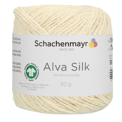Um visual nobre, sustentabilidade e condições justas de trabalho na produção caracterizam o Alva Silk. O fio cardado é composto por fibras 100% naturais, é certificado GOTS (Global Organic Textile Standard) e tem um toque agradavelmente macio graças à mistura de alta qualidade de seda, algodão e lã. Novelos de seda fina sublinham o caráter natural do fio. Com a estrutura de malha fina, é adequado para estruturas finas e padrões de renda, tanto para tricot quanto para crochet. A resistência e a composição do fio fazem do Alva Silk um fio que pode ser tricotado e usado durante todo o ano.
