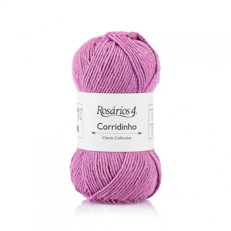 O fio Corridinho combina o algodão com uma fibra de brilho metálico, que consegue um efeito luminoso muito elegante.