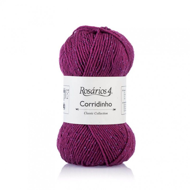 O fio Corridinho combina o algodão com uma fibra de brilho metálico, que consegue um efeito luminoso muito elegante.