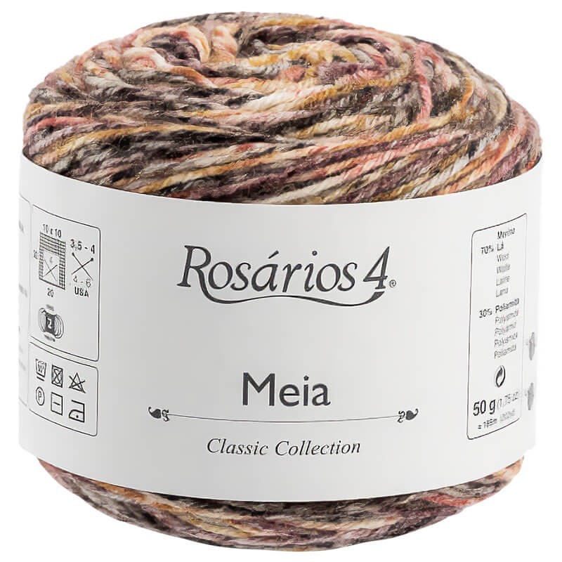 Meia Print é um fio colorido, feito de lã merino e poliamida. Essa composição proporciona total conforto, pois enquanto a lã merino oferece maciez e doçura ao toque, a poliamida dá um ponto extra de flexibilidade para que seus projetos se adaptem a cada movimento. Isso o torna especial para meias de tricot.