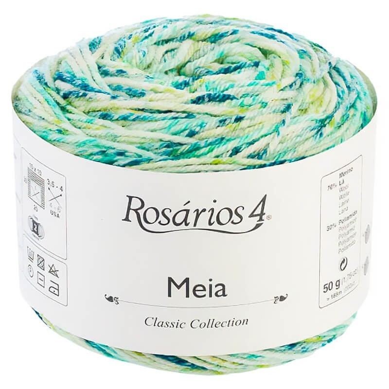 Meia Print é um fio colorido, feito de lã merino e poliamida. Essa composição proporciona total conforto, pois enquanto a lã merino oferece maciez e doçura ao toque, a poliamida dá um ponto extra de flexibilidade para que seus projetos se adaptem a cada movimento. Isso o torna especial para meias de tricot.