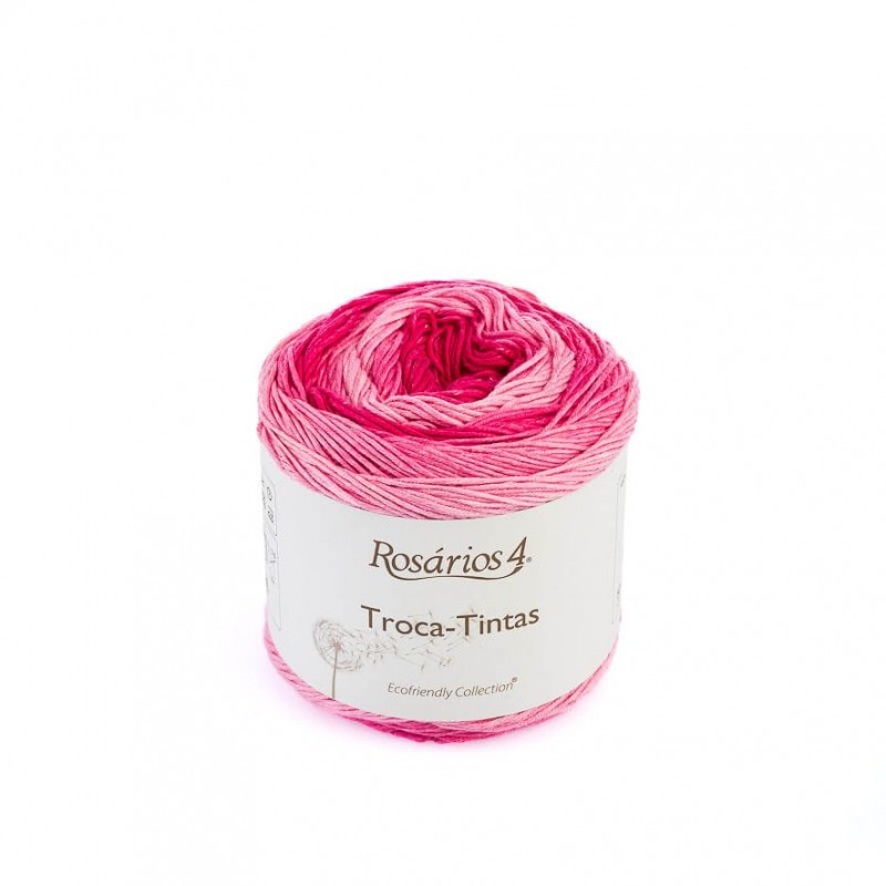 Troca-Tintas da Rosários 4 é um fio composto por 100% algodão com efeito degradê dentro do mesmo tom. É um fio com um toque fantástico, macio e muito leve.