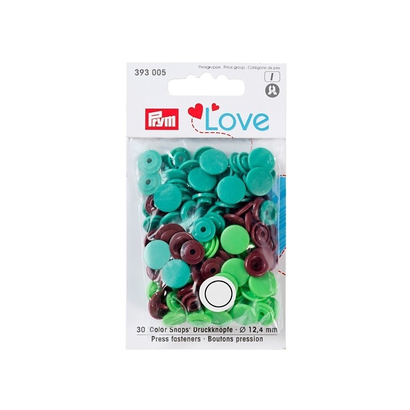 917 321 358**Prym Love - Conjunto de 30 molas de resina, tamanho 20 (12.4 mm) para trabalhar com o alicate. Cada mola é composta por 4 partes, duas capas, um macho e uma fêmea.