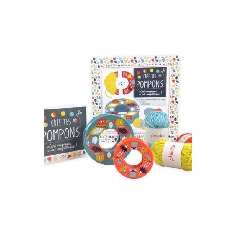 Kit composto por 3 novelos de lã , 2 moldes magnéticos e Instruções.