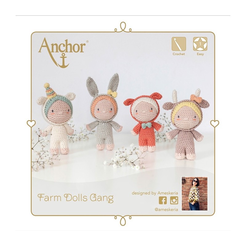 Este adorável kit de crochet de bonecas da quinta apresenta 4 adoráveis personagens: uma ovelha doce, um porco giro, um coelhinho encantador e uma curiosa boneca de vaca! Contém todos os materiais principais de que necessita. Adequado para principiantes confiantes à procura de um novo desafio, entregue com instruções e gráficos fáceis de seguir, bem como todos os principais materiais necessários para completar os desenhos.