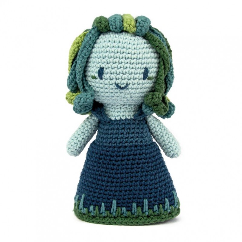 Inspirado nas tágides d'Os Lusíadas, este kit é composto por 6 novelos x 20g de fio Amigomira (100% algodão) nas cores 84, 73, 111, 74, 99 e 103 (todo o fio necessário à execução do modelo) e desdobrável com instruções em português e inglês.