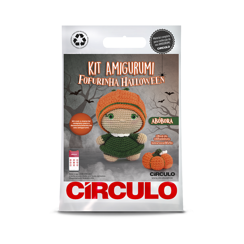 O Kit Amigurumi Fofurinha Halloween conta com cinco modelos de terror superfofos: Cinco modelos: Abóbora, Bruxinha, Espantalho, Feiticeiro e Vampiro. Todos contem o material necessário para a produção de amigurumis assustadoramente divertidos dessa coleção.