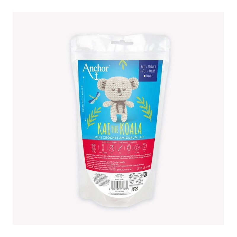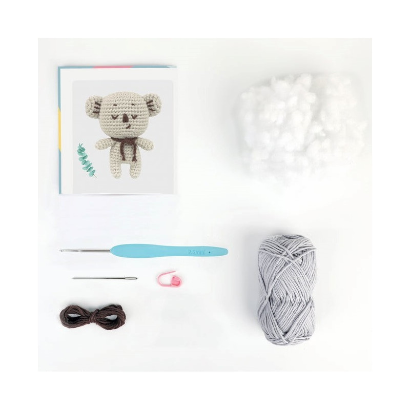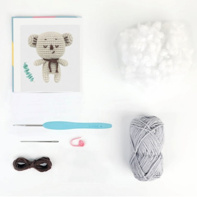 Os crocheteiros principiantes vão adorar dar vida a este mini desenho do Coala Kai. O kit contém tudo que você precisa para fazer seu amigurumi, incluindo fio 100% Algodão , linha , agulha de crochet, acessórios, enchimento e instruções.