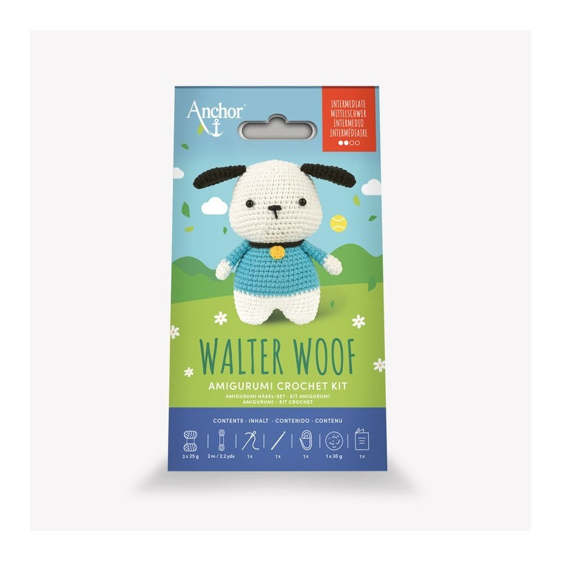 Os crocheteiros de nível intermédio vão adorar dar vida a este pequeno desenho do cão Walter. O kit contém tudo que você precisa para fazer seu amigurumi, incluindo fio 100% Algodão , linha, agulha de crochet, acessórios, enchimento e instruções.