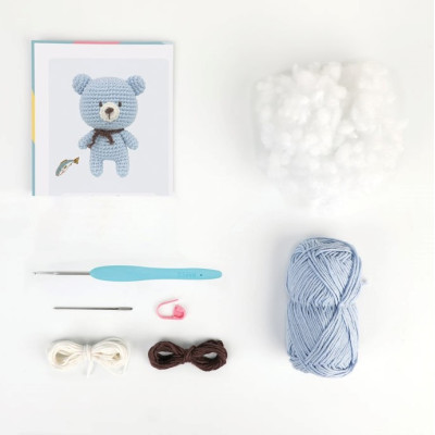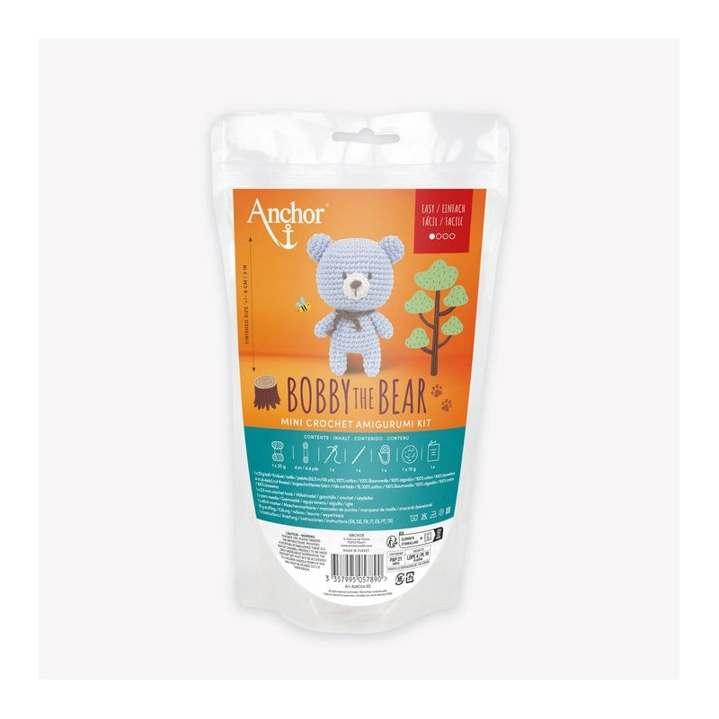 Os crocheteiros principiantes vão adorar dar vida a este mini desenho do urso Bobby. O kit contém tudo o que você precisa para fazer seu amigurumi, incluindo fio 100% algodão, linha, agulha de crochet, acessórios, enchimento e instruções.